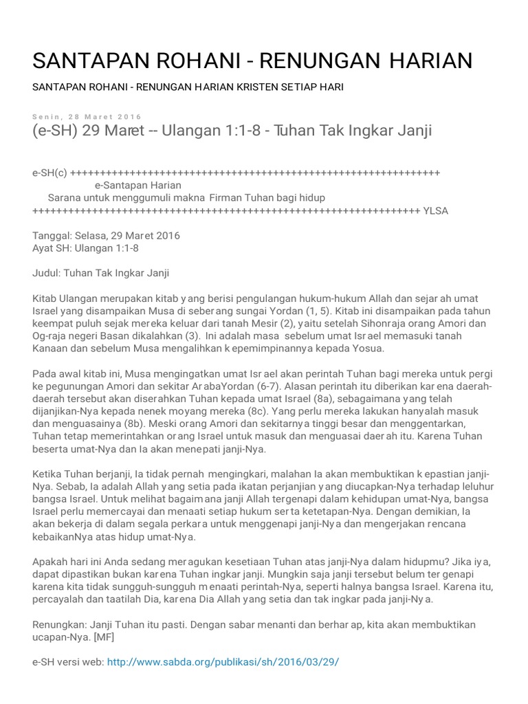 Uncategorized Firman Santapan Rohani Beragam materi audio dan video berupa bacaan renungan santapan rohani dan khotbah dari bible conference teachings yang diadakan odb indonesia bisa dinikmati melalui situs web Firman adalah sumber santapan atau makanan rohani agar kita menjadi tumbuh sesuai keserupaan kristus