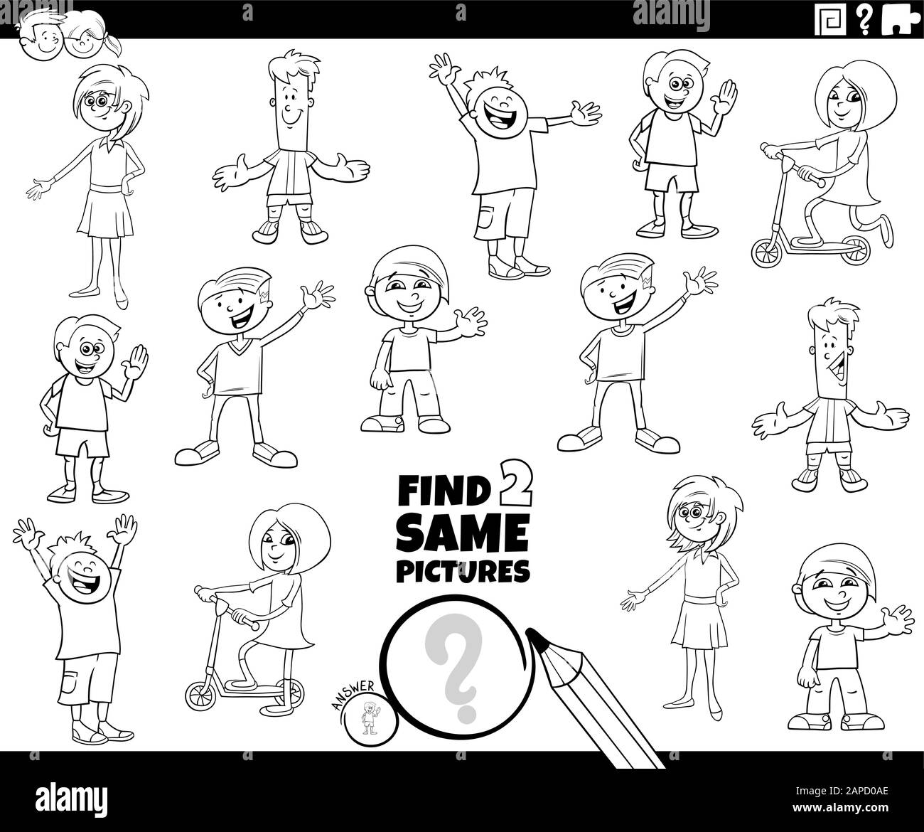 Dibujos Animados Blanco Y Negro Ilustracion De Encontrar Dos Mismas Imagenes Actividades Educativas Juego Para Ninos Con Ninas Y Ninos Personajes Ninos Colorear B Imagen Vector De Stock Alamy Andamios en blanco y negro.